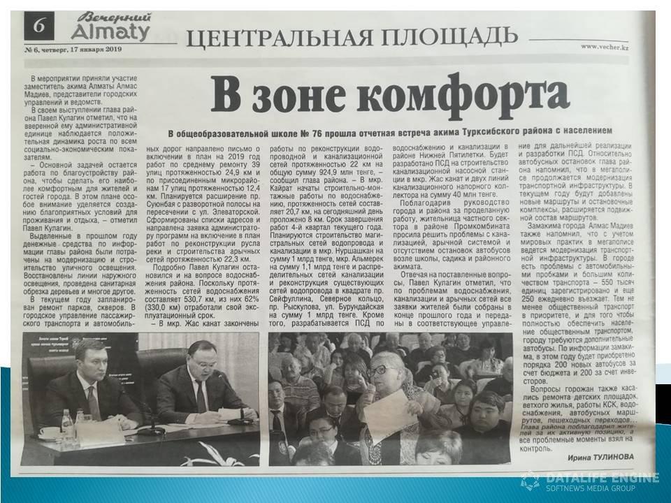 18 январь 2019 0 1 2 3 4 5 В КГУ ОШ №76 прошла отчетная встреча акима Турксибского района с населением