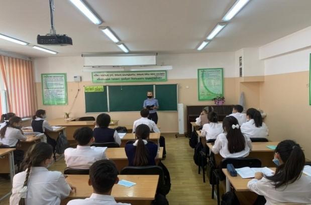 04 октября 2022 года проведена с учащимися КГУ ОШ №76 7-8 классов на тему «Профилактика правонарушений среди несовершеннолетних» с разъяснениями правил поведения в общественных местах, в конфликтных ситуациях. Были ознакомлены статьями административного и уголовного кодекса РК. На вопросы со стороны учеников были даны ответы.