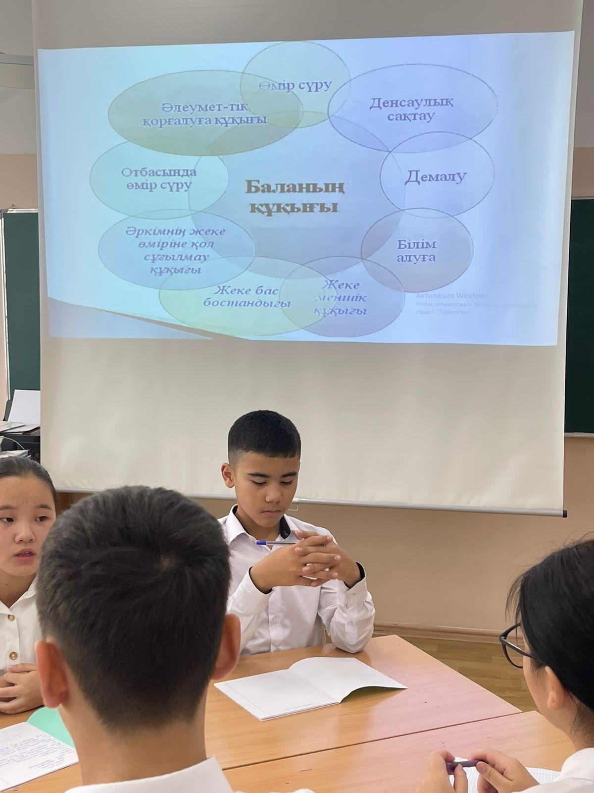 17 ноябрь 2022 0 1 2 3 4 5 «Бала құқығы – адам құқығы» атты онкүндік «Бала құқығы – адам құқығы» атты онкүндік аясында тәрбие жұмысының жоспарына сәйкес «Әр баланың құқығы бар – Каждый ребенок имеет право» тақырыбында 15 қараша күні жаппай сынып сағаты өтті.