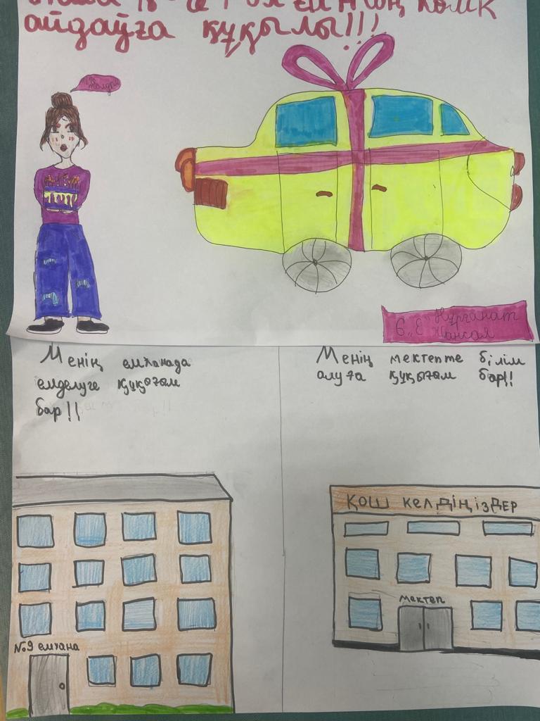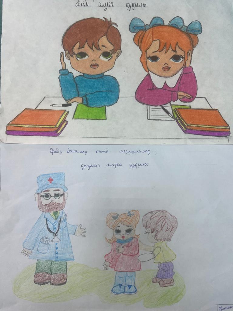 «Бала құқығы – адам құқығы» атты онкүндік аясында тәрбие жұмысының жоспарына сәйкес «Әр баланың құқығы бар – Каждый ребенок имеет право» тақырыбында 5-6 – сынып оқушылар арасында сурет байқауы ұйымдастырылды.