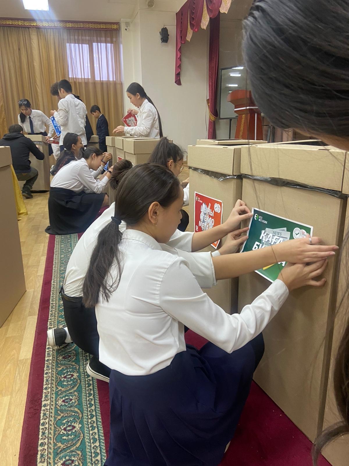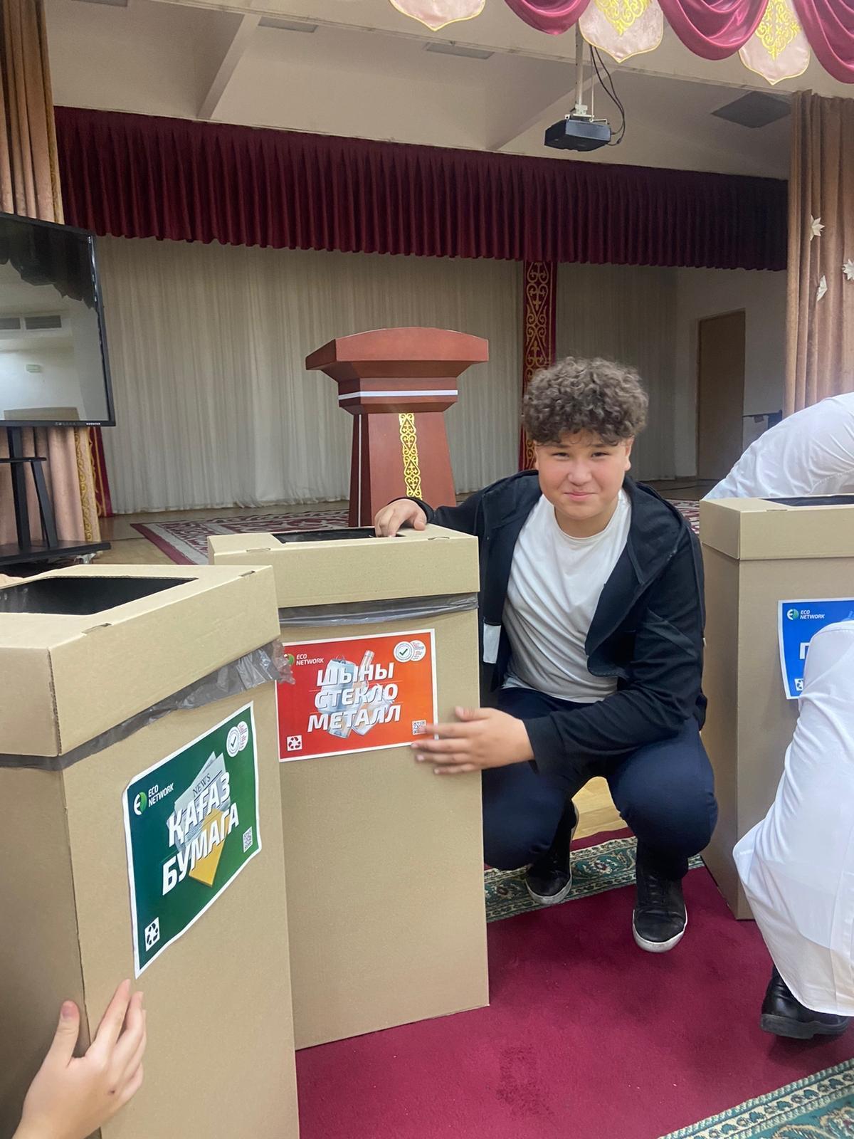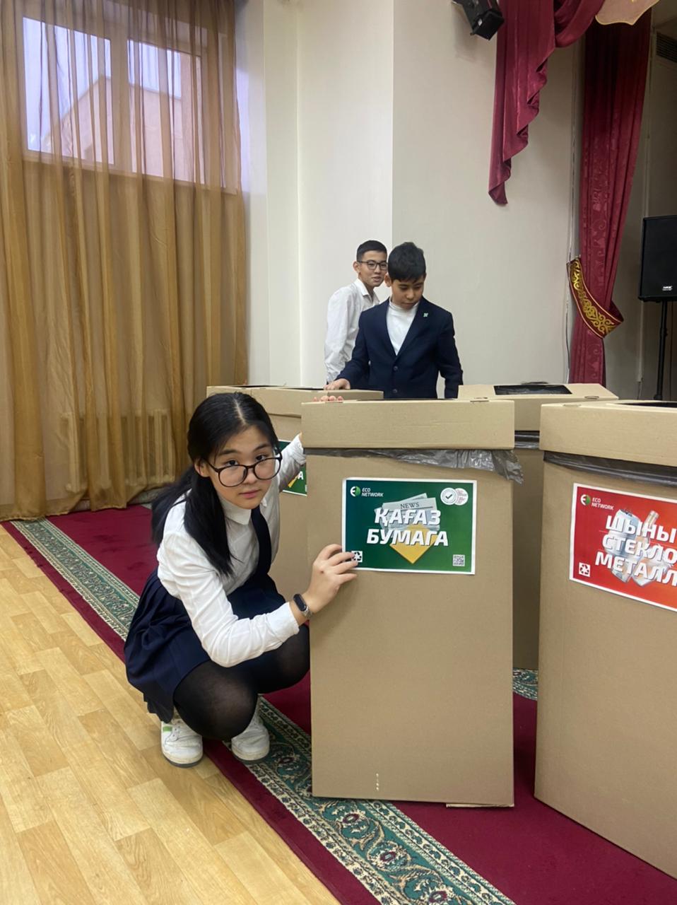 №76 жалпы білім беретін мектепте "Жасыл мектеп" ECO NETWORK жобасы аясында мектебімізде қайта өңдеуге болатын қоқыстарды жинайтын жәшіктер орнатылды.