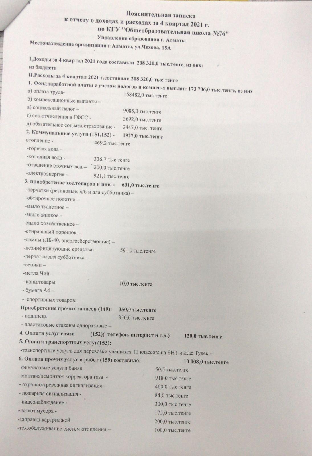 12 январь 2022 0 1 2 3 4 5 2021 жылғы 4 тоқсандағы кірістер мен шығыстар туралы есеп, Отчет о доходах и расходах за 4 квартал 2021 года