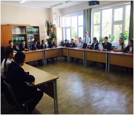 Қазан айында 8-9 сыныпар арасында «Біздің таңдауымыз заңды мемлекет », «Қоғамдық тәртіп негіздері » тақырыбында дөңгелек үстел өтті. Дөңгелек үстел барысында құқықтық мемлекеттің негізгі қағидаттарын, сондай-ақ біздің елімізде құқықтық мемлекеттің қалыптасу ерекшеліктерін талқылау ұсынылды