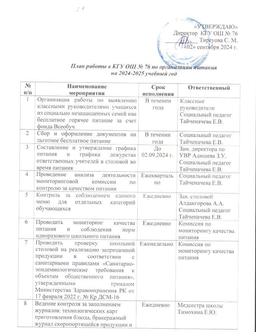 02 сентябрь 2024 0 1 2 3 4 5 Тамақтануды ұйымдастыру бойынша жұмыс жоспары / План работы по организации питания