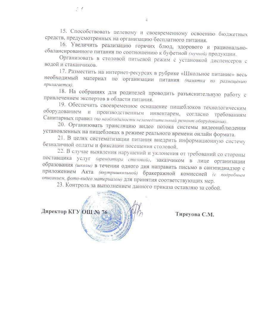 Тамақтануды ұйымдастыру туралы бұйрық / Приказ об организации питания