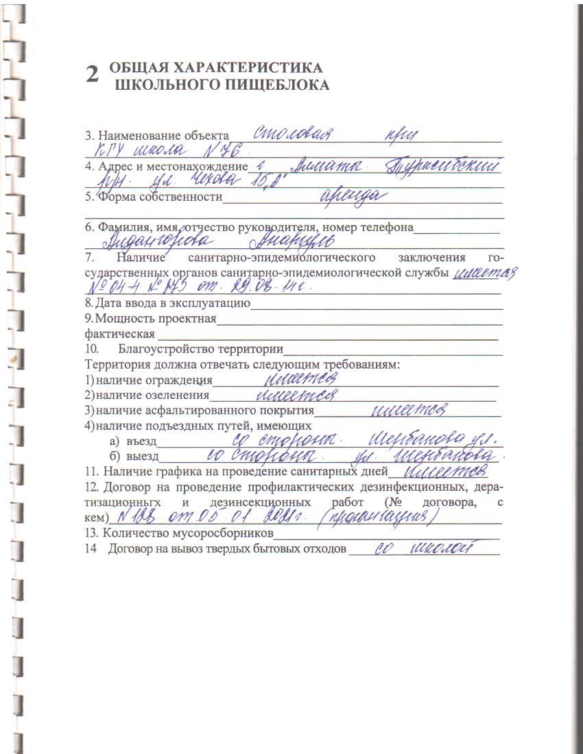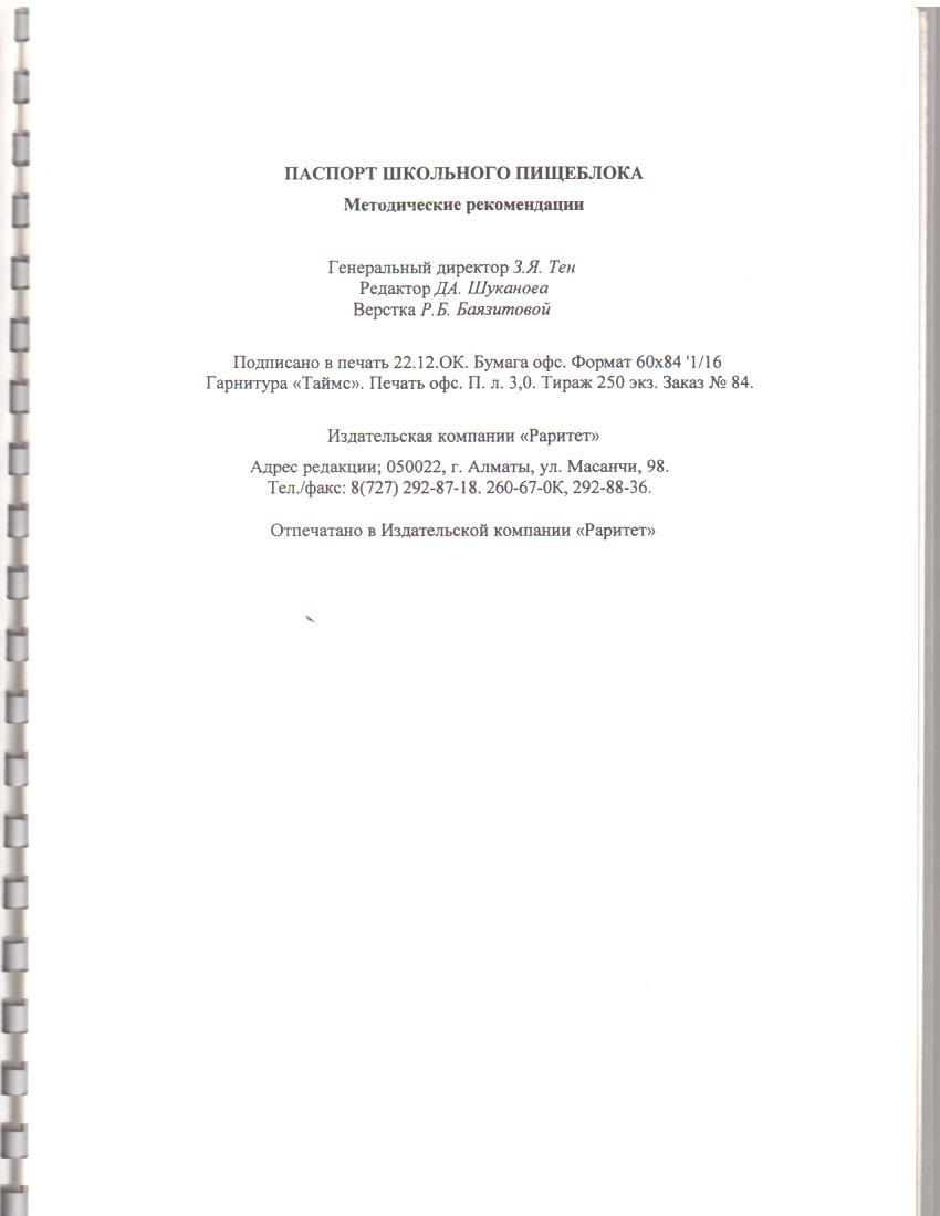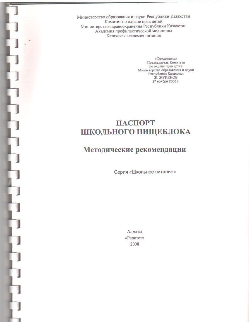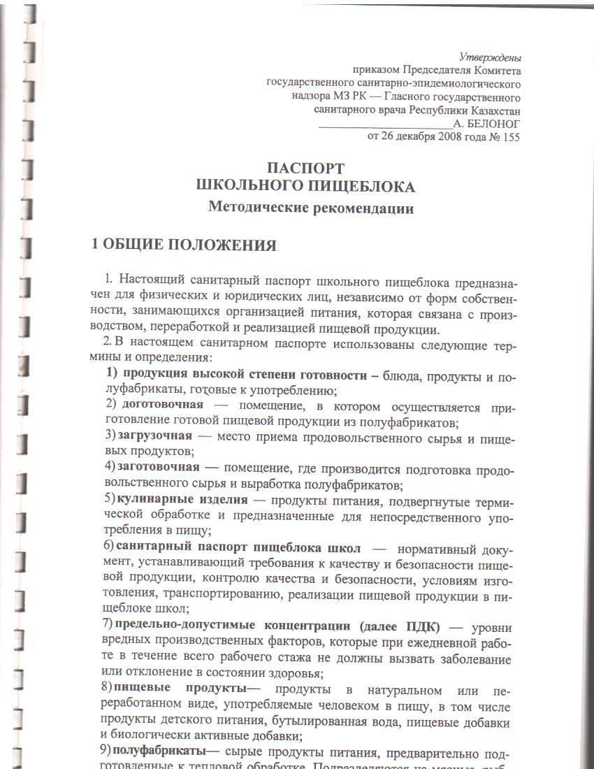 Мектеп тамақтандыру бөлімшесінің төлқұжаты/ Паспорт школьного пищеблока