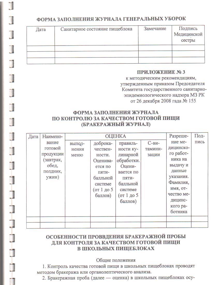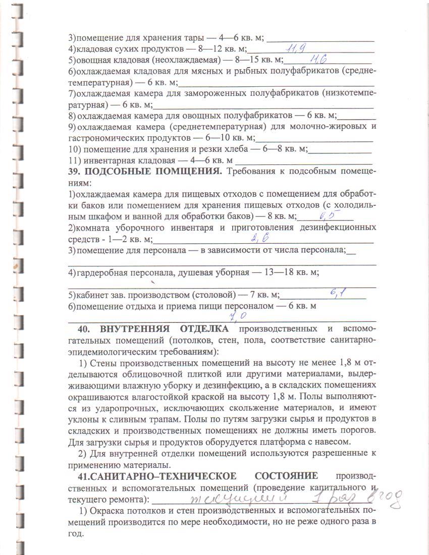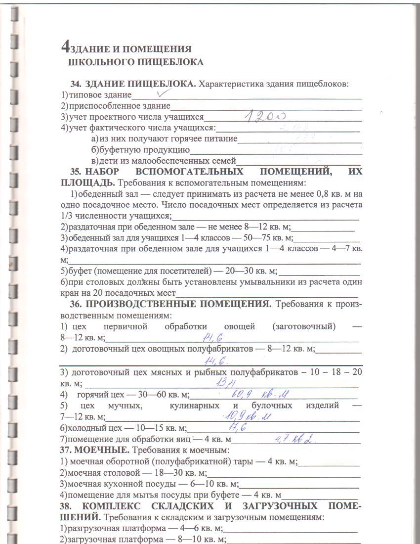 Мектеп ас блогының паспорты, Паспорт школьного пищеблока
