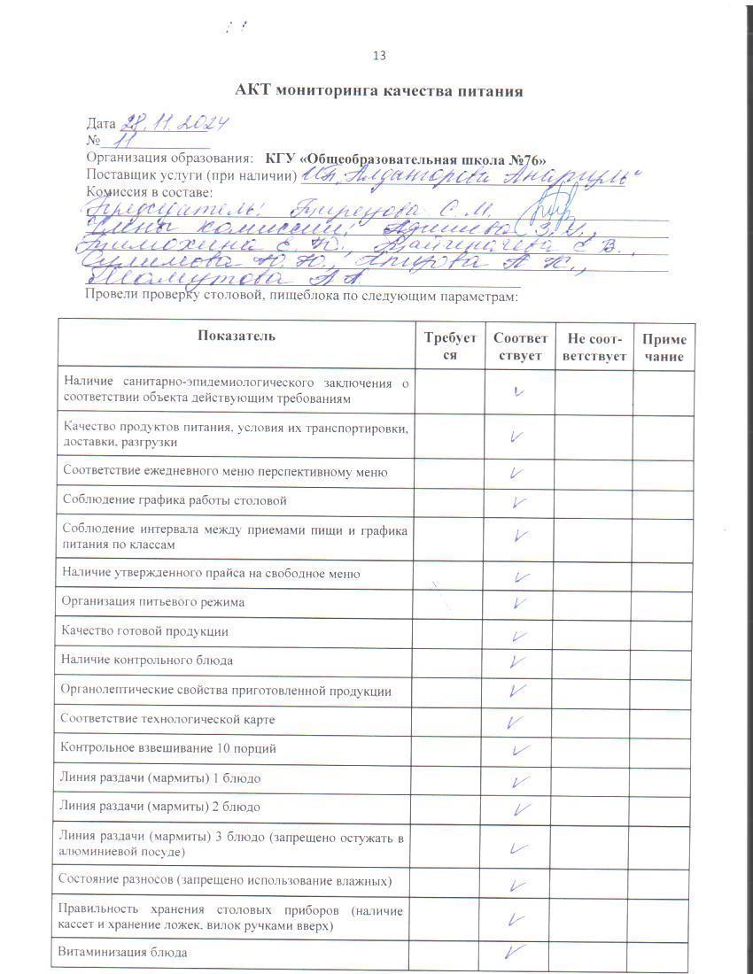 28 ноябрь 2024 0 1 2 3 4 5 Тамақ өнімдерінің сапасын бақылау жөніндегі комиссияның № 11 актісі. / Акт № 11 комиссии по мониторингу за качеством питания.