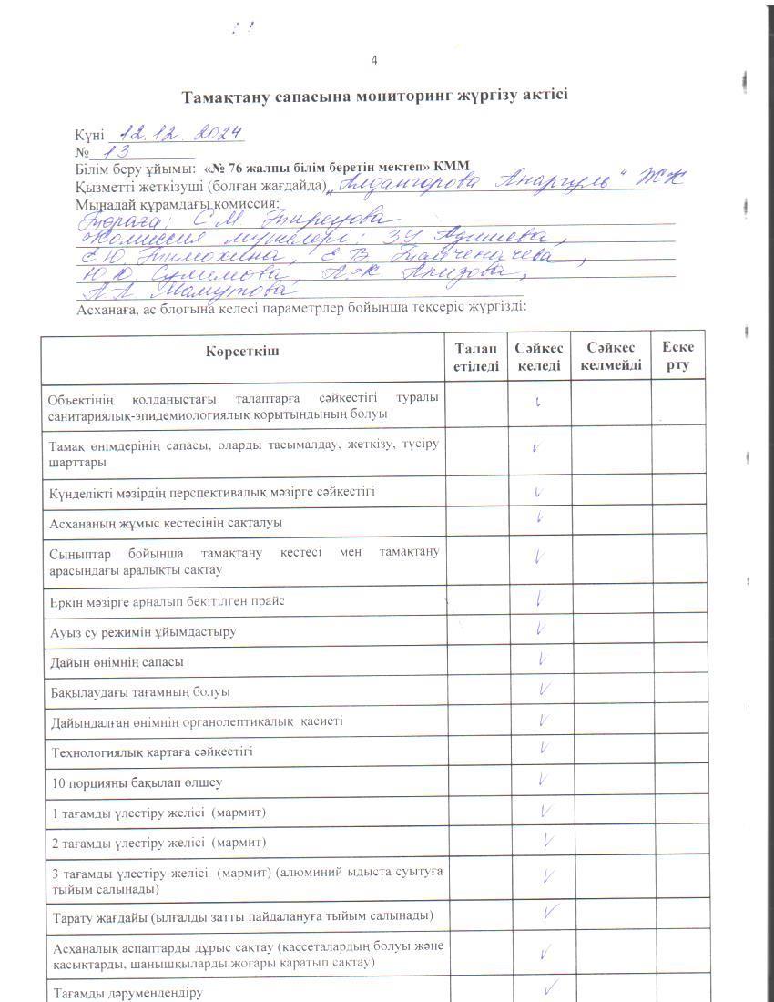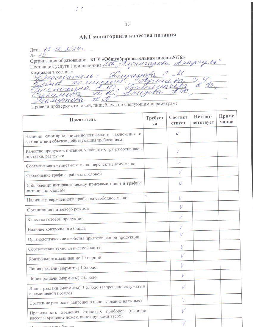 12 декабрь 2024 0 1 2 3 4 5 Тамақ өнімдерінің сапасын бақылау жөніндегі комиссияның № 13 актісі. / Акт № 13 комиссии по мониторингу за качеством питания.