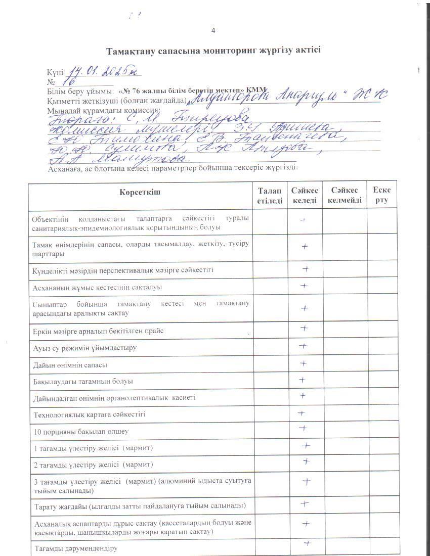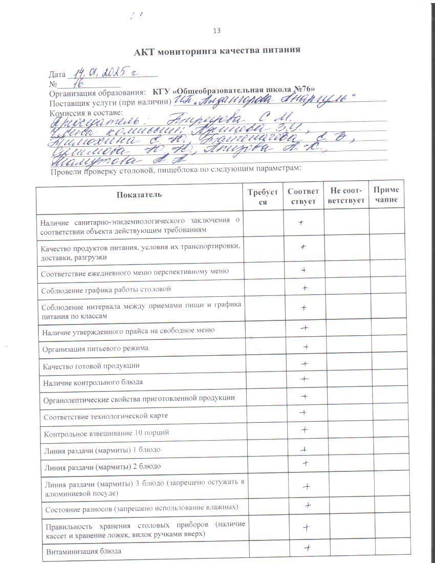 14 январь 2025 0 1 2 3 4 5 Тамақ өнімдерінің сапасын бақылау жөніндегі комиссияның № 16 актісі. / Акт № 16 комиссии по мониторингу за качеством питания.