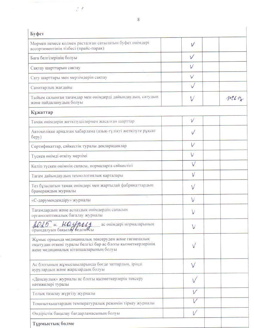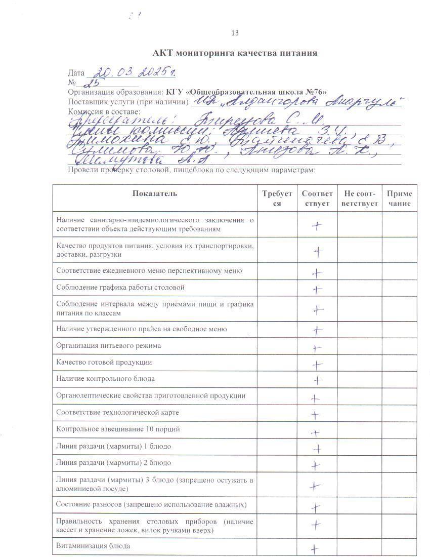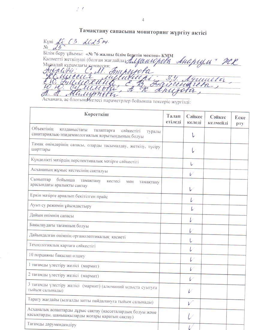 20 март 2025 0 1 2 3 4 5 Тамақ өнімдерінің сапасын бақылау жөніндегі комиссияның № 25 актісі. / Акт № 25 комиссии по мониторингу за качеством питания.