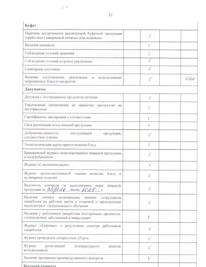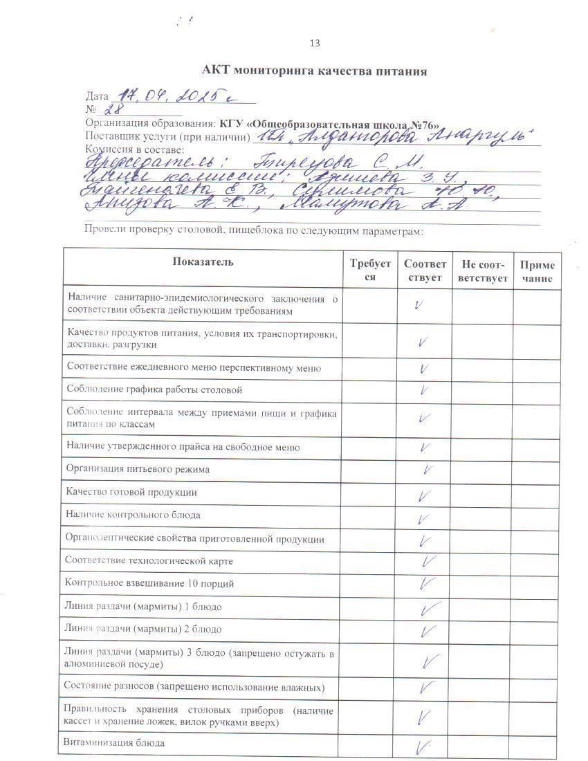 17 апрель 2025 0 1 2 3 4 5 Тамақ өнімдерінің сапасын бақылау жөніндегі комиссияның № 28 актісі. / Акт № 28 комиссии по мониторингу за качеством питания.