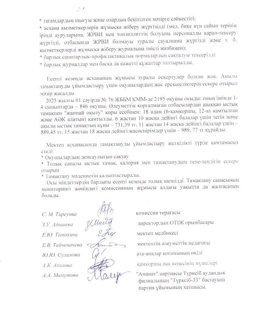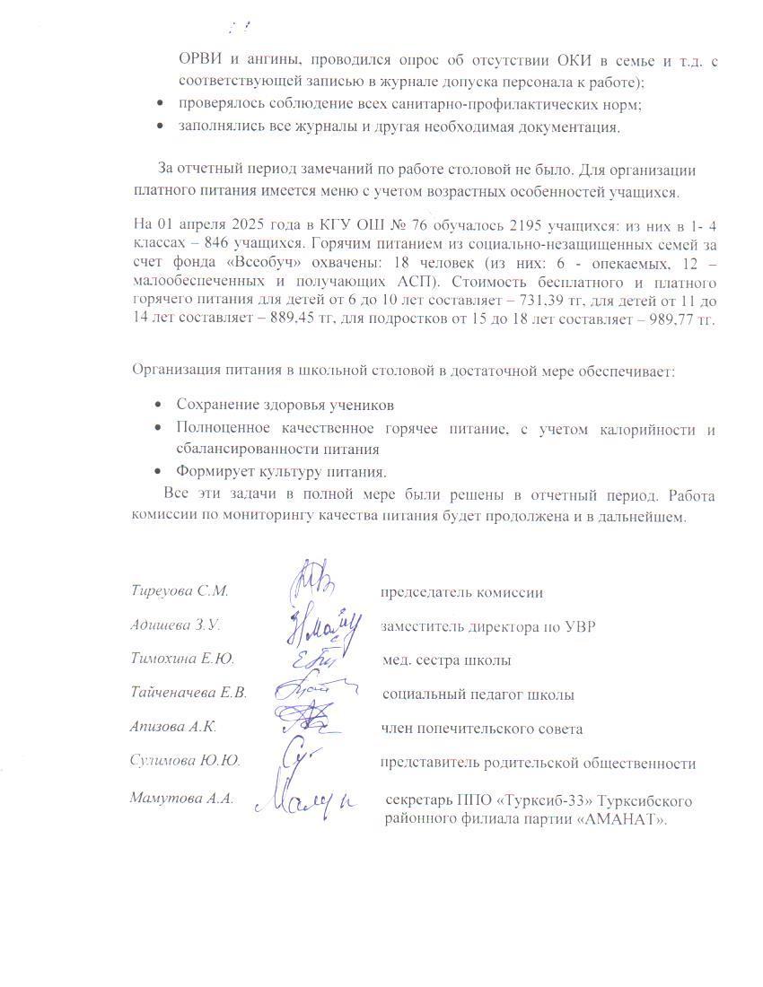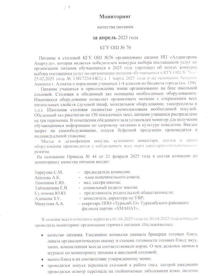 30 апрель 2025 0 1 2 3 4 5 Бақылау комиссиясының 2025 жылғы сәуір айындағы есебі. / Отчет комиссии по мониторингу за качеством питания за апрель 2025 года.