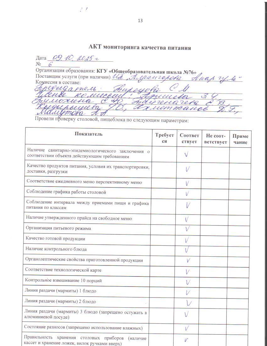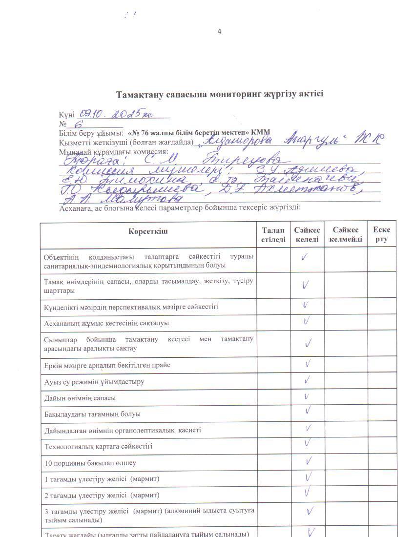 09 октябрь 2025 0 1 2 3 4 5 Тамақ өнімдерінің сапасын бақылау жөніндегі комиссияның № 6 актісі. / Акт № 6 комиссии по мониторингу за качеством питания. Тамақ өнімдерінің сапасын бақылау жөніндегі комиссияның № 6 актісі. / Акт № 6 комиссии по мониторингу за качеством питания.