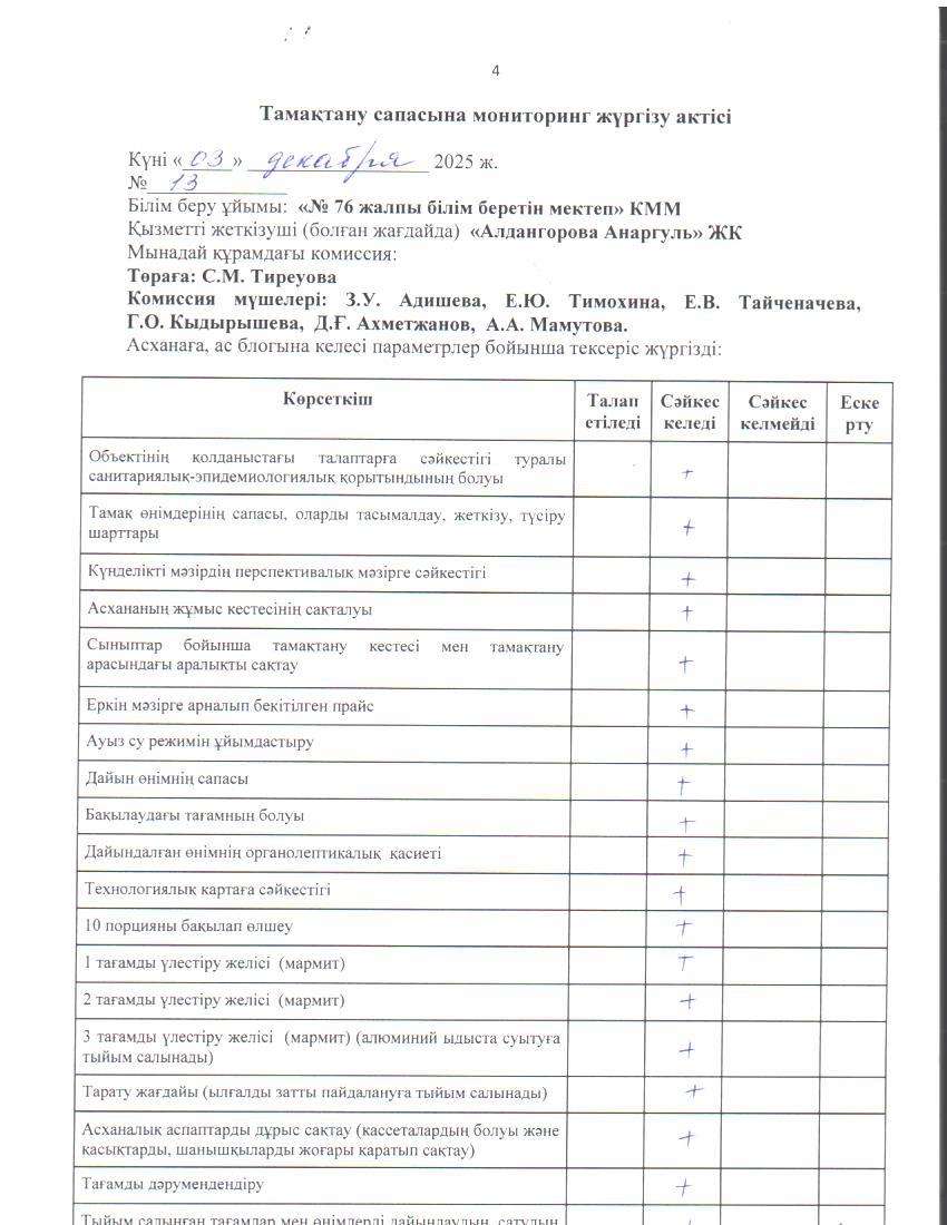 03 декабрь 2025 0 1 2 3 4 5 Тамақ өнімдерінің сапасын бақылау жөніндегі комиссияның № 13 актісі. / Акт № 13 комиссии по мониторингу за качеством питания.