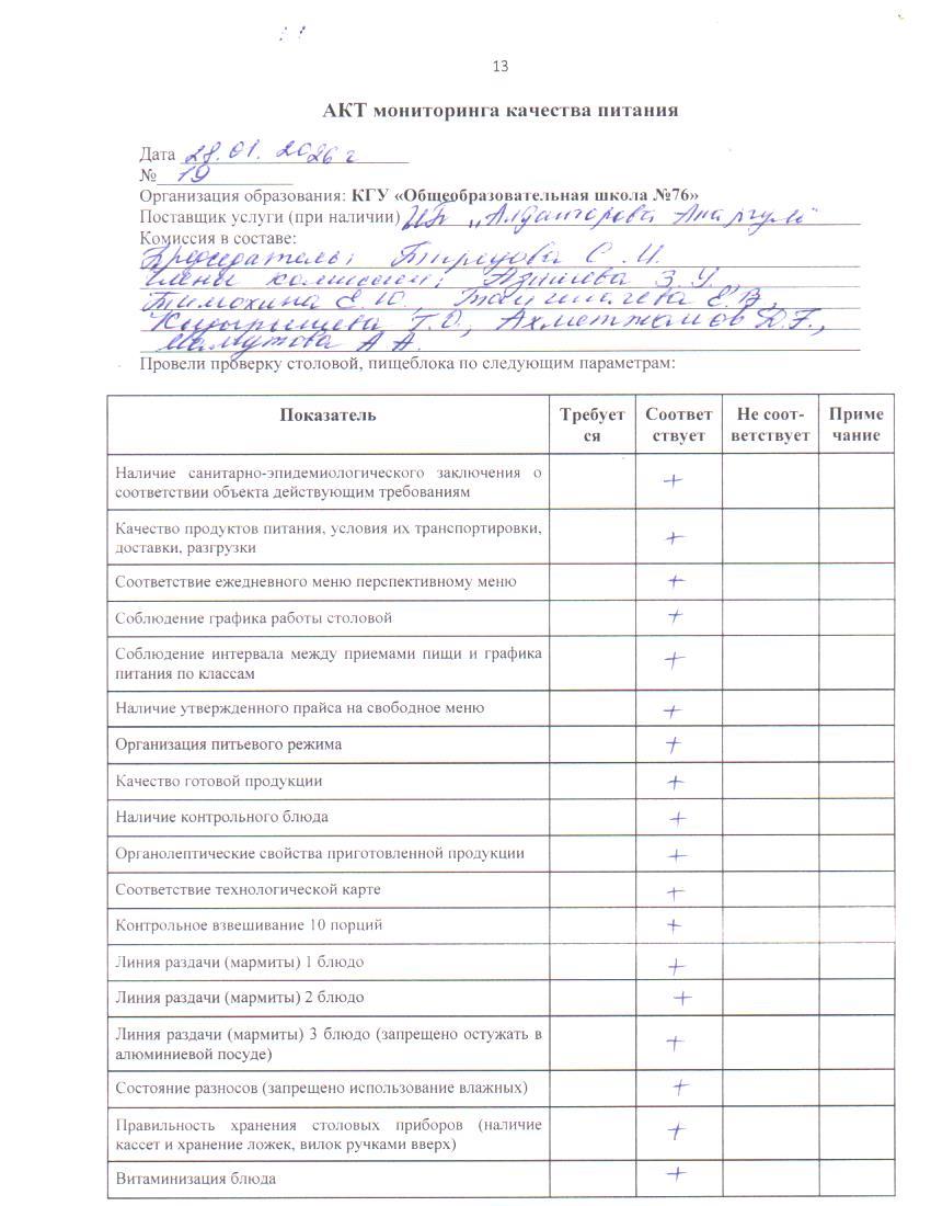 28 январь 2026 0 1 2 3 4 5 Тамақ өнімдерінің сапасын бақылау жөніндегі комиссияның № 19 актісі. / Акт № 19 комиссии по мониторингу за качеством питания.