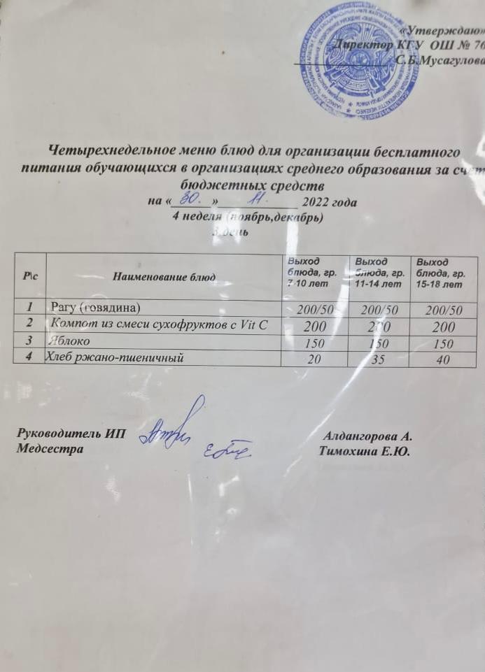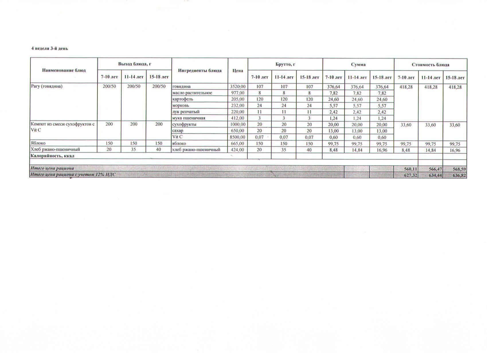 Четырехнедельное меню блюд для организации бесплатного питания обучающихся в организациях среднего образования за счет бюджетных средств (ноябрь, декабрь)