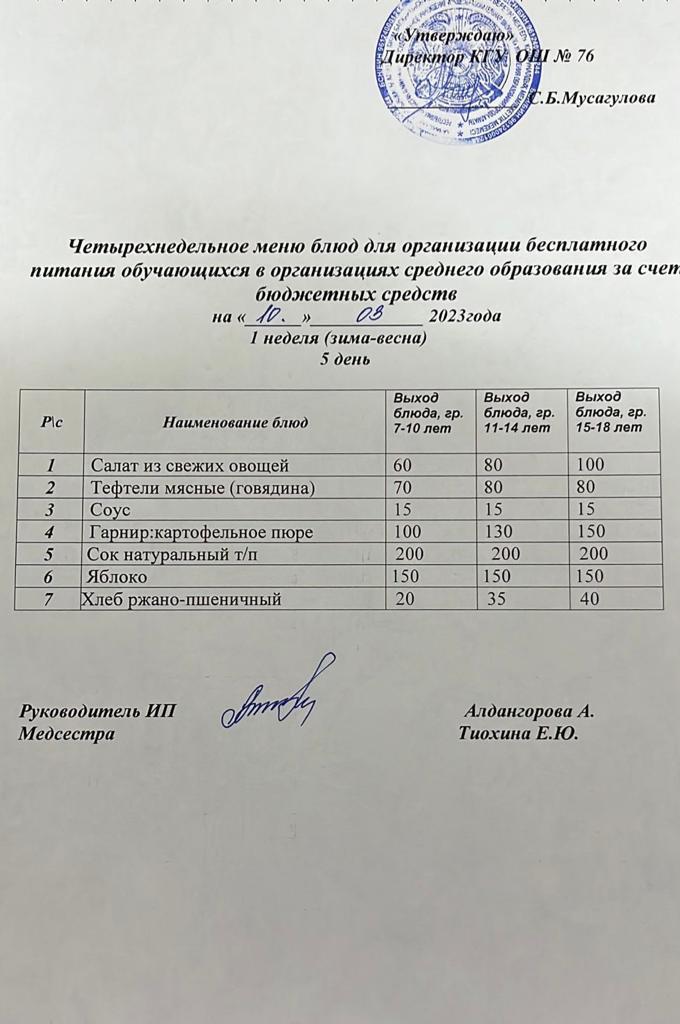 Четырехнедельное меню блюд для организации бесплатного питания обучающихся в организациях среднего образования за счет бюджетных средств (зима-весна)