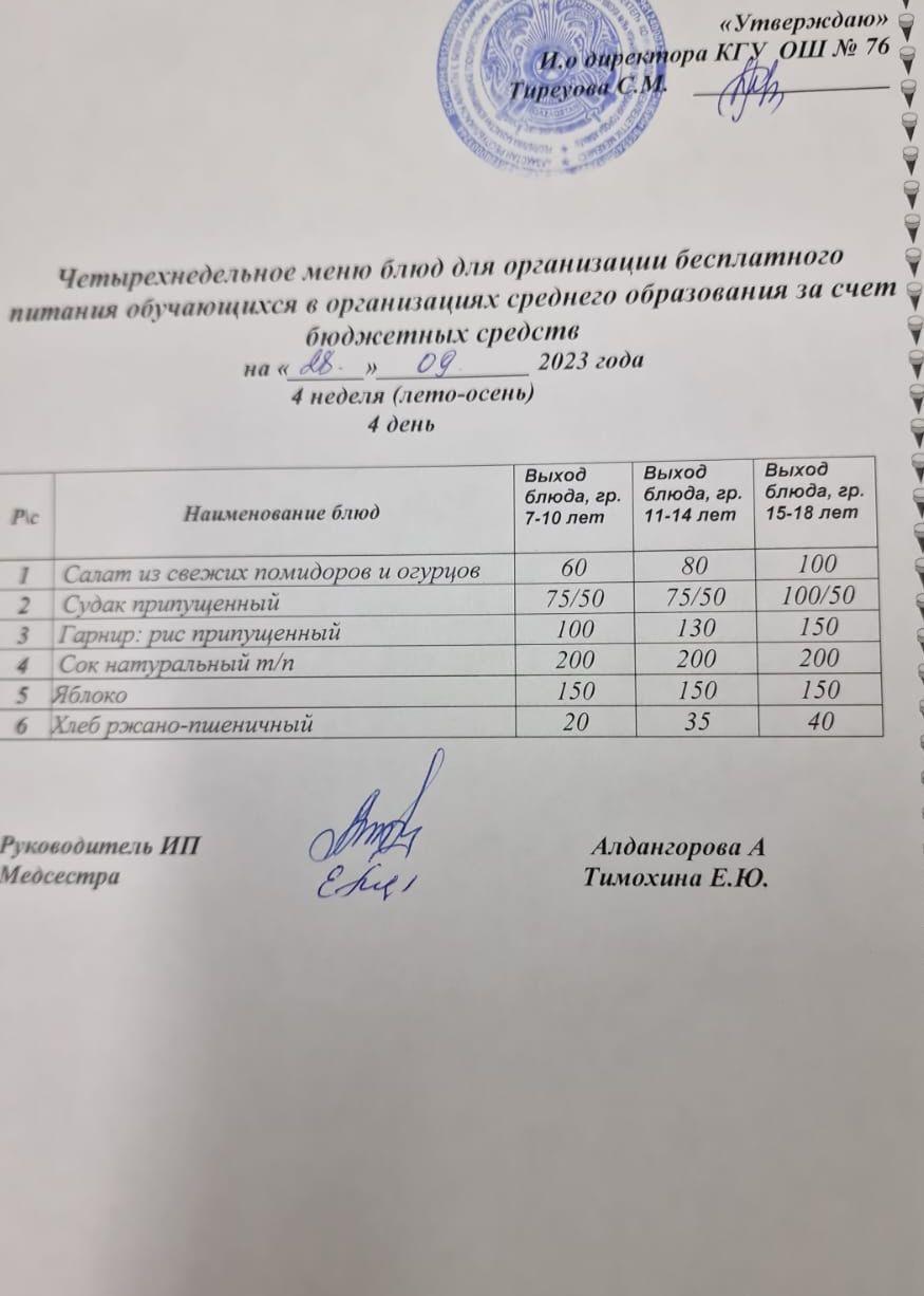 28 сентябрь 2023 0 1 2 3 4 5 1-4 сынып, 5-11 сынып ХӘОТ мәзірі. Жаз-күз 2023 жыл. / Меню 1-4 кл, 5-11 кл СУСН. Лето-осень 2023