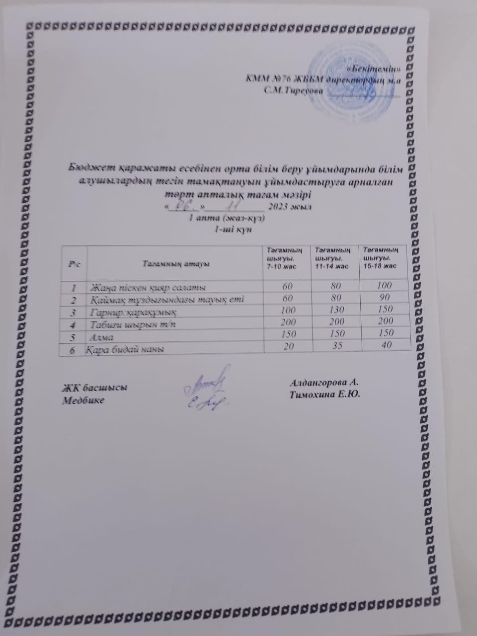 06 ноябрь 2023 0 1 2 3 4 5 1-4 сынып, 5-11 сынып ХӘОТ мәзірі. Жаз-күз 2023 жыл. / Меню 1-4 кл, 5-11 кл СУСН. Лето-осень 2023