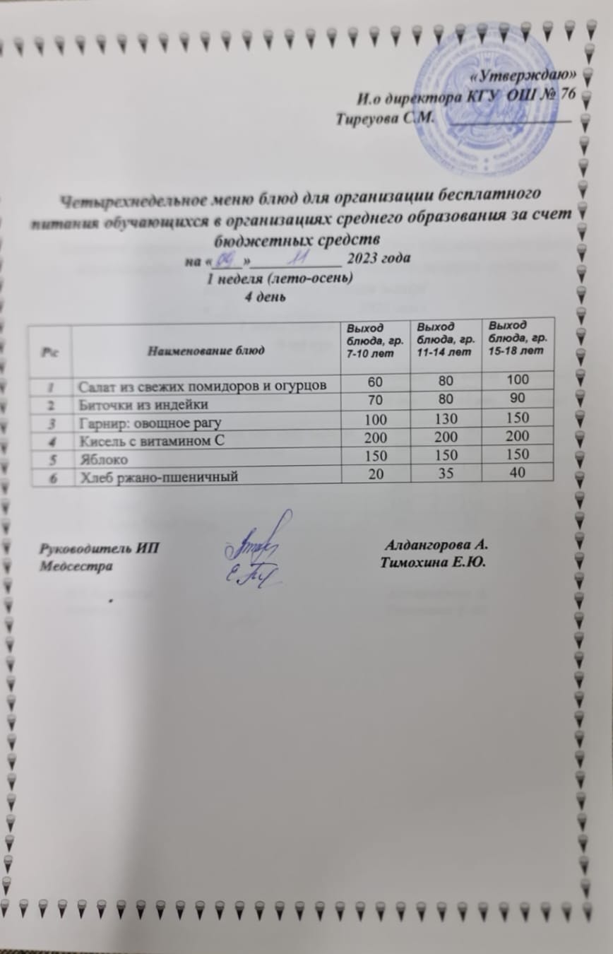 09 ноябрь 2023 0 1 2 3 4 5 1-4 сынып, 5-11 сынып ХӘОТ мәзірі. Жаз-күз 2023 жыл. / Меню 1-4 кл, 5-11 кл СУСН. Лето-осень 2023