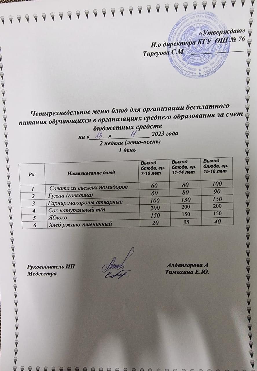 13 ноябрь 2023 0 1 2 3 4 5 1-4 сынып, 5-11 сынып ХӘОТ мәзірі. Жаз-күз 2023 жыл. / Меню 1-4 кл, 5-11 кл СУСН. Лето-осень 2023