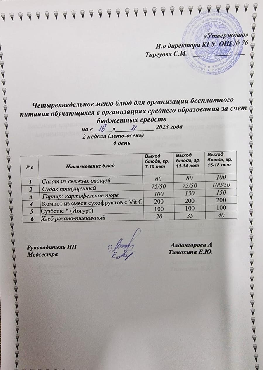 16 ноябрь 2023 0 1 2 3 4 5 1-4 сынып, 5-11 сынып ХӘОТ мәзірі. Жаз-күз 2023 жыл. / Меню 1-4 кл, 5-11 кл СУСН. Лето-осень 2023