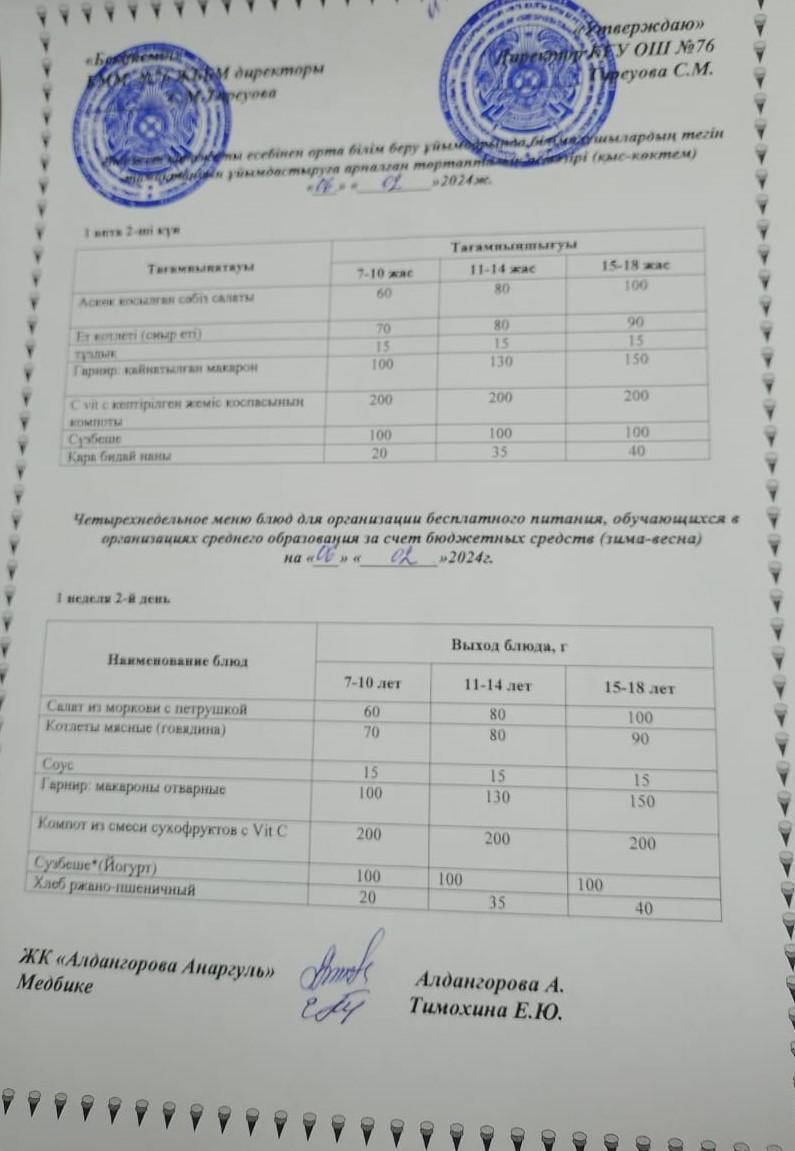 06 февраль 2024 0 1 2 3 4 5 1-4 сынып, 5-11 сынып ХӘОТ мәзірі. Қыс-Көктем 2024 жыл. / Меню 1-4 кл, 5-11 кл СУСН. Зима- весна 2024