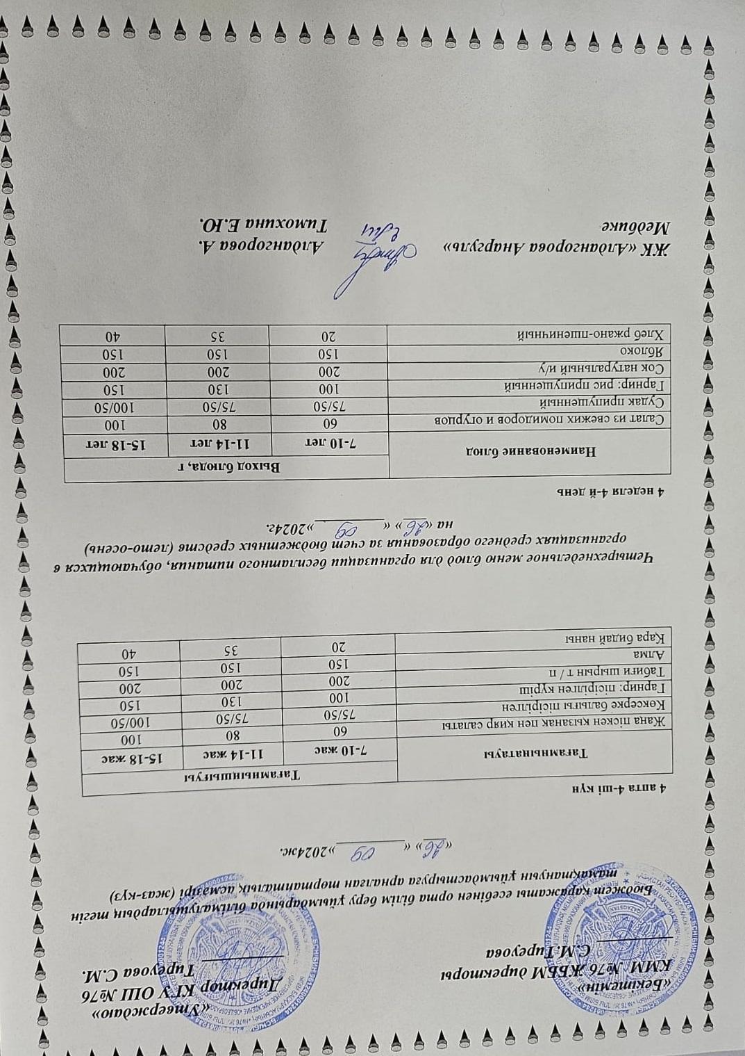 26 сентябрь 2024 0 1 2 3 4 5 1-4 сынып, 5-11 сынып ХӘОТ мәзірі. Жаз-күз 2024 жыл. / Меню 1-4 кл, 5-11 кл СУСН. Лето-осень 2024.
