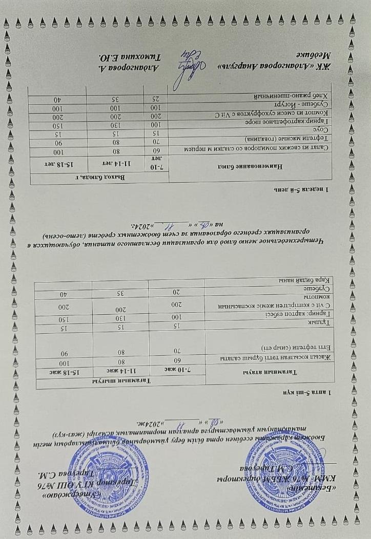 08 ноябрь 2024 0 1 2 3 4 5 1-4 сынып, 5-11 сынып ХӘОТ мәзірі. Жаз-күз 2024 жыл. / Меню 1-4 кл, 5-11 кл СУСН. Лето-осень 2024.