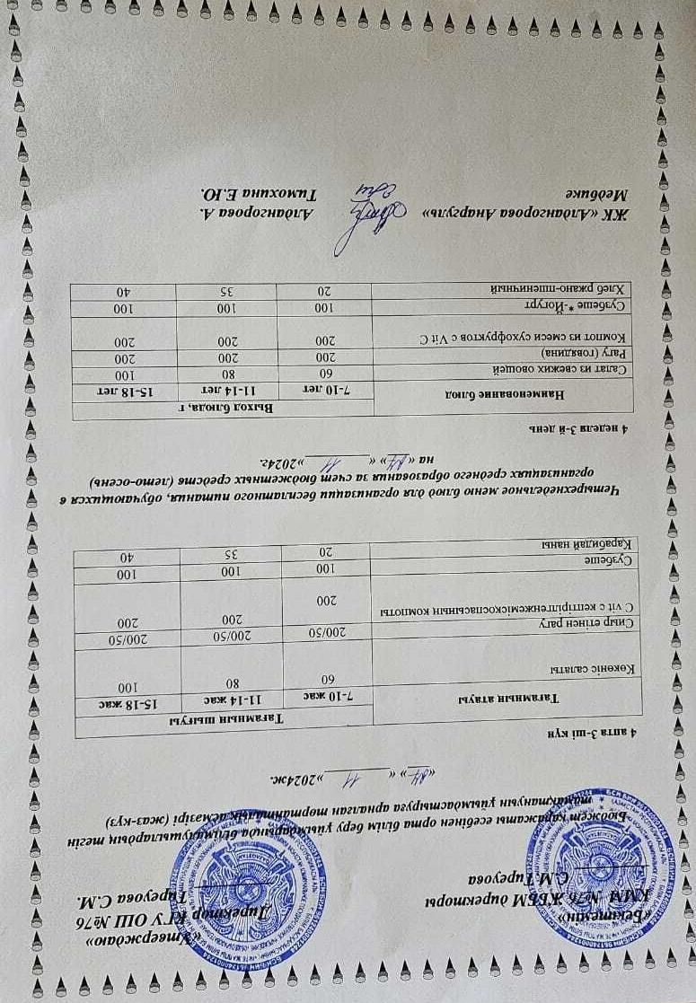 27 ноябрь 2024 0 1 2 3 4 5 1-4 сынып, 5-11 сынып ХӘОТ мәзірі. Жаз-күз 2024 жыл. / Меню 1-4 кл, 5-11 кл СУСН. Лето-осень 2024.