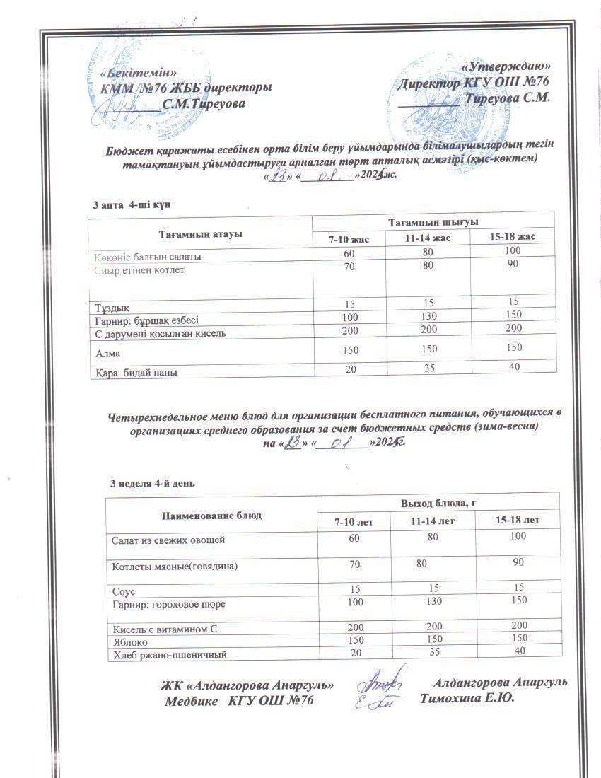 23 январь 2025 0 1 2 3 4 5 1-4 сынып, 5-11 сынып ХӘОТ мәзірі. Қыс- көктем 2025 жыл. / Меню 1-4 кл, 5-11 кл СУСН. Зима-весна 2025.