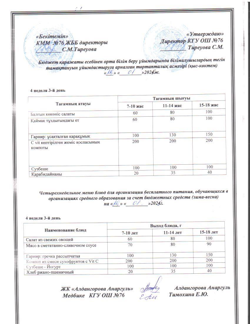 29 январь 2025 0 1 2 3 4 5 1-4 сынып, 5-11 сынып ХӘОТ мәзірі. Қыс- көктем 2025 жыл. / Меню 1-4 кл, 5-11 кл СУСН. Зима-весна 2025.