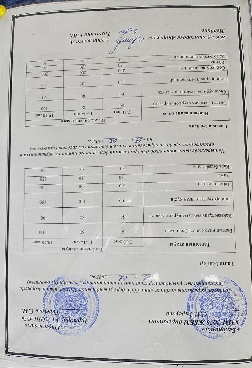 03 февраль 2025 0 1 2 3 4 5 1-4 сынып, 5-11 сынып ХӘОТ мәзірі. Қыс- көктем 2025 жыл. / Меню 1-4 кл, 5-11 кл СУСН. Зима-весна 2025.