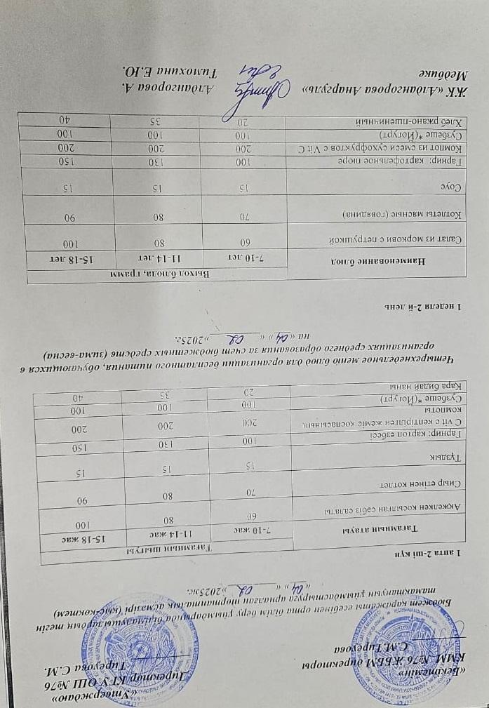 04 февраль 2025 0 1 2 3 4 5 1-4 сынып, 5-11 сынып ХӘОТ мәзірі. Қыс- көктем 2025 жыл. / Меню 1-4 кл, 5-11 кл СУСН. Зима-весна 2025.