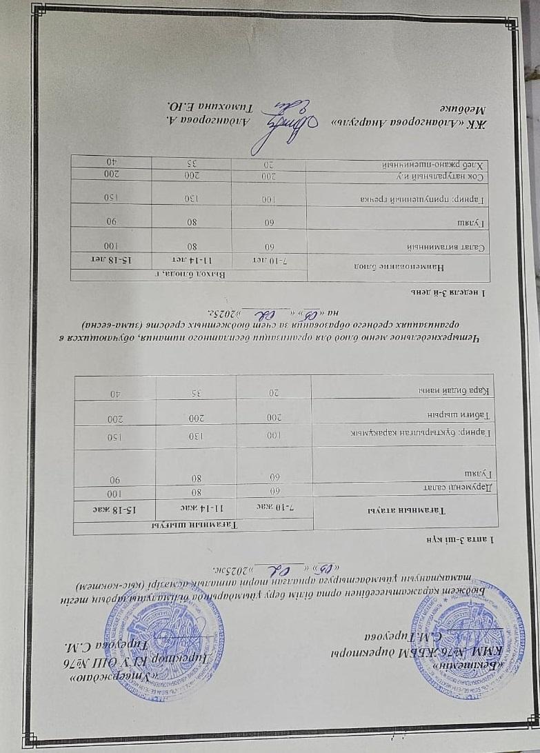 05 февраль 2025 0 1 2 3 4 5 1-4 сынып, 5-11 сынып ХӘОТ мәзірі. Қыс- көктем 2025 жыл. / Меню 1-4 кл, 5-11 кл СУСН. Зима-весна 2025.