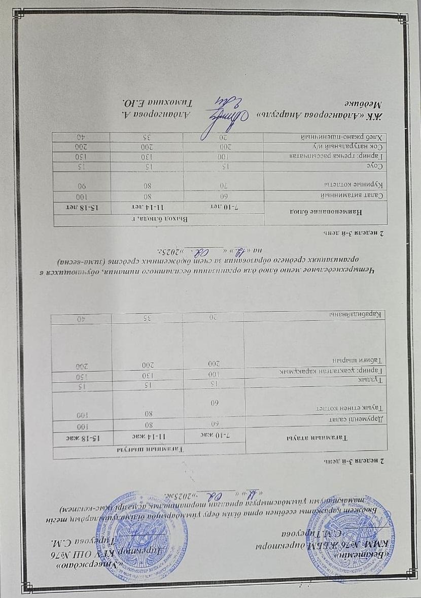 12 февраль 2025 0 1 2 3 4 5 1-4 сынып, 5-11 сынып ХӘОТ мәзірі. Қыс- көктем 2025 жыл. / Меню 1-4 кл, 5-11 кл СУСН. Зима-весна 2025.