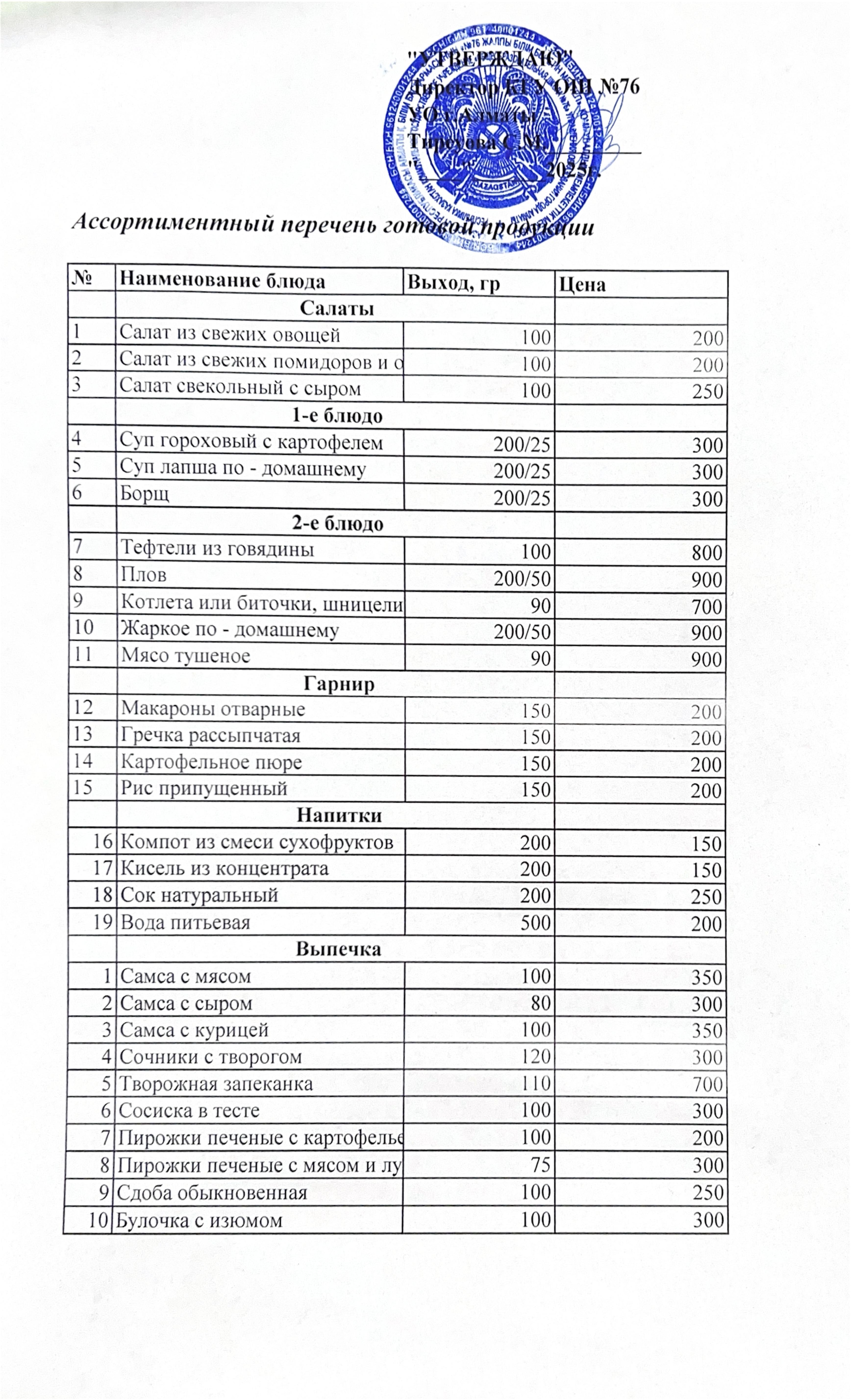 09 январь 2025 0 1 2 3 4 5 Шығарылатын өнімнің ассортименттік тізбесі / Ассортиментный перечень выпускаемой продукции