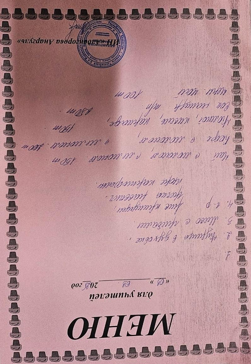» Ақылы ыстық тамақ мәзірі / Меню платного горячего питания