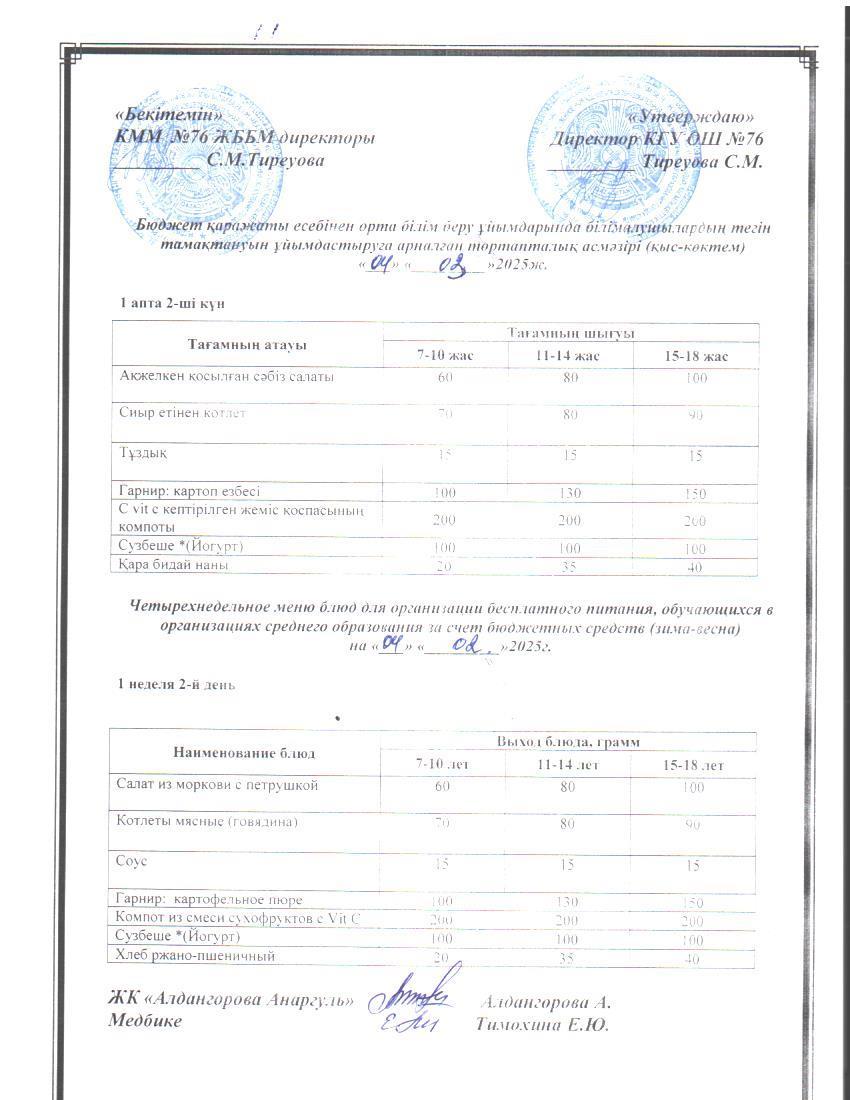 04 март 2025 0 1 2 3 4 5 1-4 сынып, 5-11 сынып ХӘОТ мәзірі. Қыс- көктем 2025 жыл. / Меню 1-4 кл, 5-11 кл СУСН. Зима-весна 2025.