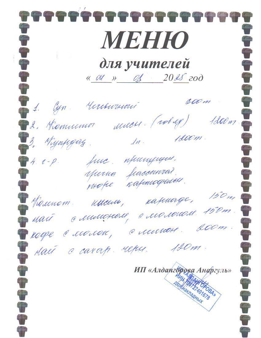 » Ақылы ыстық тамақ мәзірі / Меню платного горячего питания