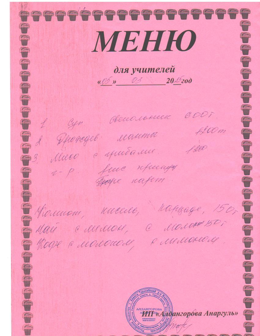 » Ақылы ыстық тамақ мәзірі / Меню платного горячего питания