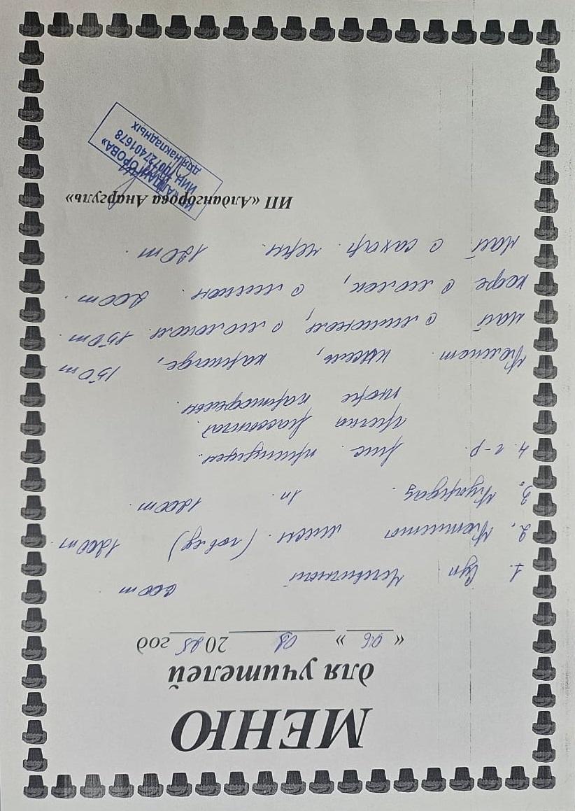 » Ақылы ыстық тамақ мәзірі / Меню платного горячего питания