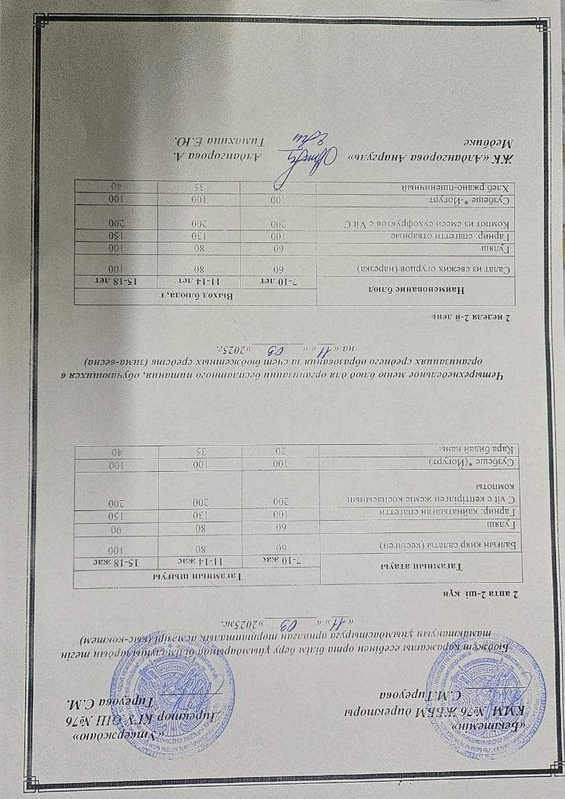 11 март 2025 0 1 2 3 4 5 1-4 сынып, 5-11 сынып ХӘОТ мәзірі. Қыс- көктем 2025 жыл. / Меню 1-4 кл, 5-11 кл СУСН. Зима-весна 2025.