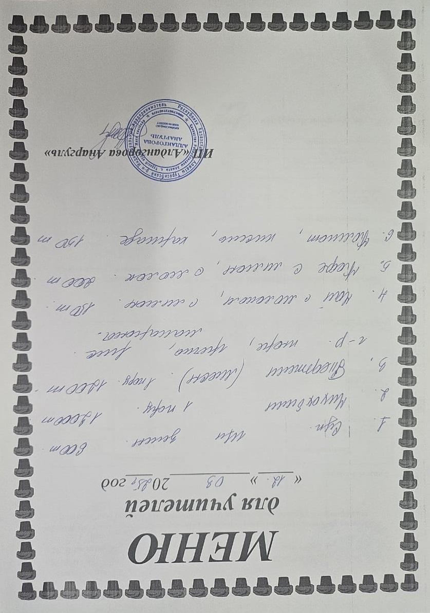» Ақылы ыстық тамақ мәзірі / Меню платного горячего питания