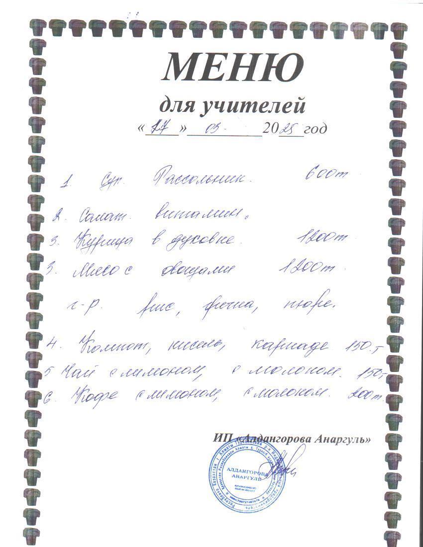 » Ақылы ыстық тамақ мәзірі / Меню платного горячего питания