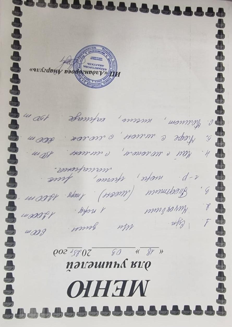 » Ақылы ыстық тамақ мәзірі / Меню платного горячего питания