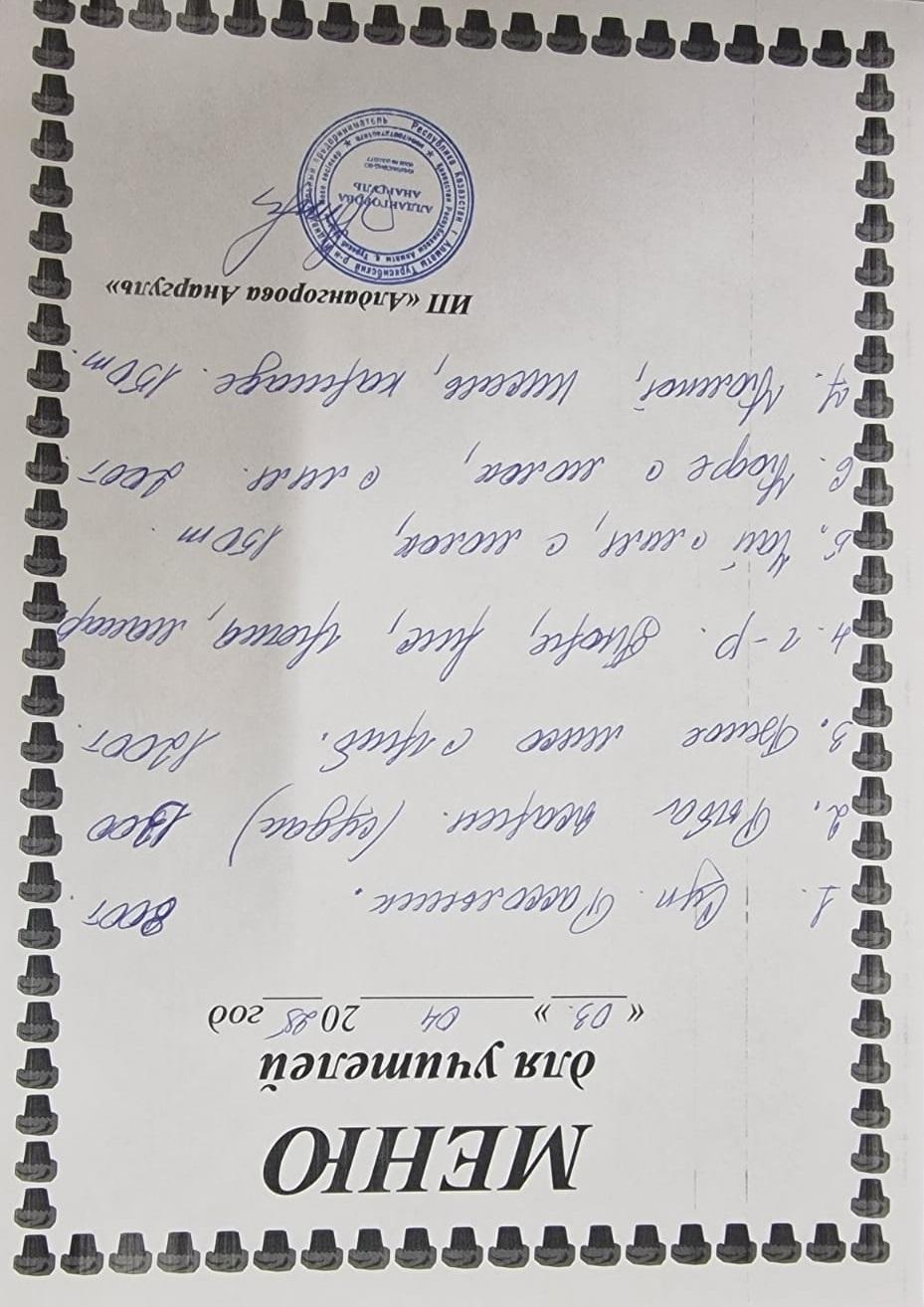 » Ақылы ыстық тамақ мәзірі / Меню платного горячего питания