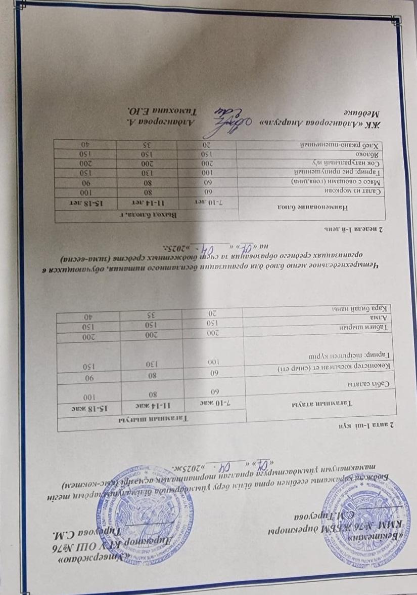 07 апрель 2025 0 1 2 3 4 5 1-4 сынып, 5-11 сынып ХӘОТ мәзірі. Қыс- көктем 2025 жыл. / Меню 1-4 кл, 5-11 кл СУСН. Зима-весна 2025.