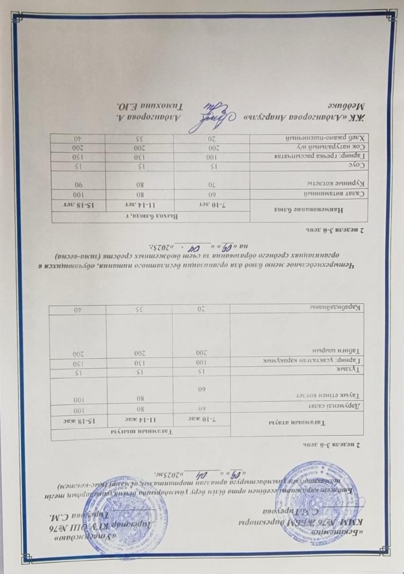 09 апрель 2025 0 1 2 3 4 5 1-4 сынып, 5-11 сынып ХӘОТ мәзірі. Қыс- көктем 2025 жыл. / Меню 1-4 кл, 5-11 кл СУСН. Зима-весна 2025.